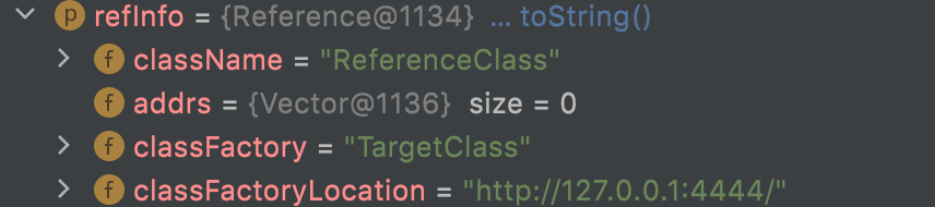 此处处理后的Reference如下,与RMI系统中设置的一致: